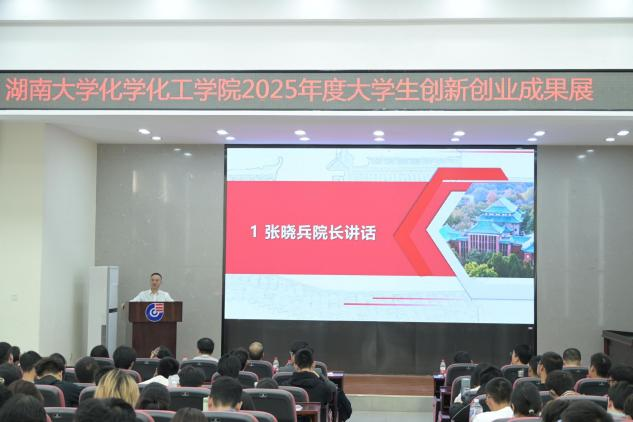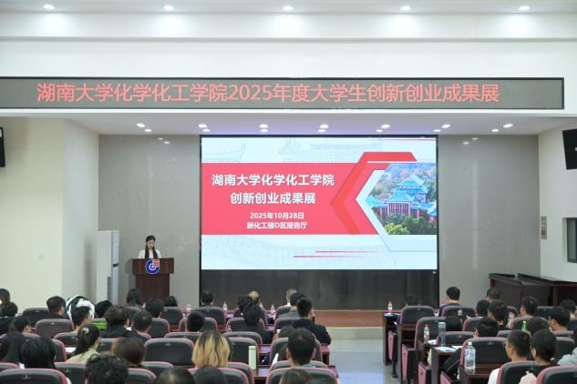 10月28日中午12:30,湖南大学化学化工学院“点燃双创星火,共赏青春硕果”创新创业成果展活动在新化工楼D区报告厅隆重举行。学院院长张晓兵、副院长李永军、院务助理王少飞、双创中心主任金波,以及朱建、高红霞、李文生、李昆、蒋晓洁、蔡炽、陈淑云等十余位教师代表,与数百名学生共同参与活动,集中展示学院双创领域亮眼成果,搭建交流平台,激发师生创新创业热情。